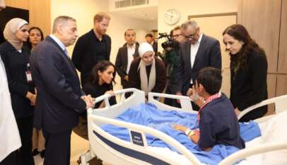 مدير عام الصحة العالمية والأميران هاري وميغان يزورون أطفال غزة بالمستشفى التخصصي