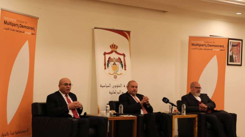 من جانبه، تحدث ممثل المعهد الهولندي للديمقراطية متعددة الأحزاب في الأردن السيد بشار الخطيب عن أهمية الشراكة الاستراتيجية بين المعهد ووزارة الشؤون السياسية والبرلمانية، والتي امتدت منذ عام 2019 حتى الآن، وصولا إلى إطلاق الفوج السابع من “معهد السياسة” الذي خرج على مدار السنوات الماضية أكثر من 300 شابة وشابا من الناشطين سياسياً، سواء اًكانوا حزبيين أم لا؛ وتطرق الخطيب إلى برنامج معهد السياسة الذي يركز على خلق المعرفة في موضوعات النظرية الديمقراطية، والاقتصاد السياسي، والقانون؛ إضافة إلى مهارات التواصل السياسي، والعمل الحزبي، والتحليل السياسي.