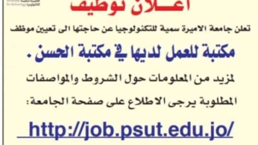 وظيفة شاغرة لدى جامعة الاميرة سمية للتكنولوجيا