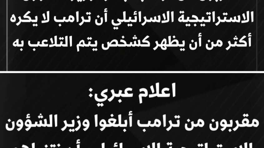 الرؤيا - ع إذاعة الجيش الإسرائيلي : مقربون من ترمب أبلغوا ديرمر أن نتنياهو يتلاعب بالرئيس الأمريكي