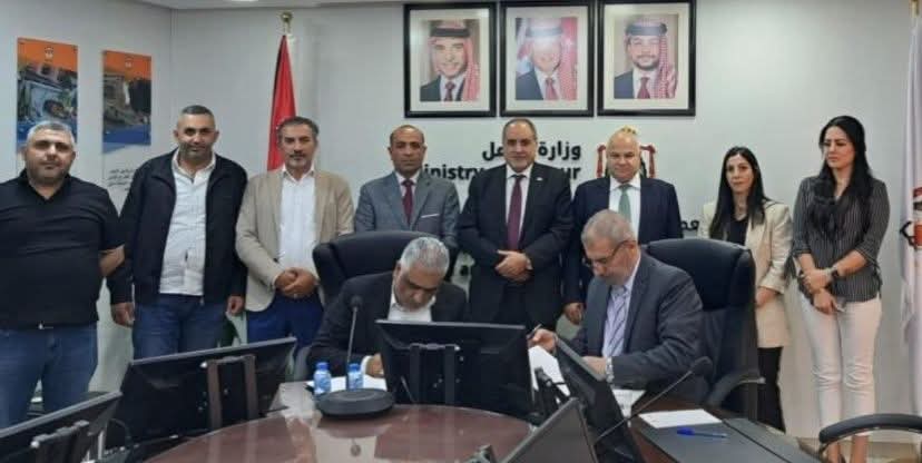 وأكد البكار خلال التوقيع بحضور رئيس الاتحاد العام لنقابات عمال الأردن خالد الفناطسة ومدير عام الشركة المهندس فراس حماد، حرص الوزارة على متابعة شؤون العاملين والتواصل مع أطراف العملية الإنتاجية، وبما يسهم في حل النزاعات العمالية الجماعية.