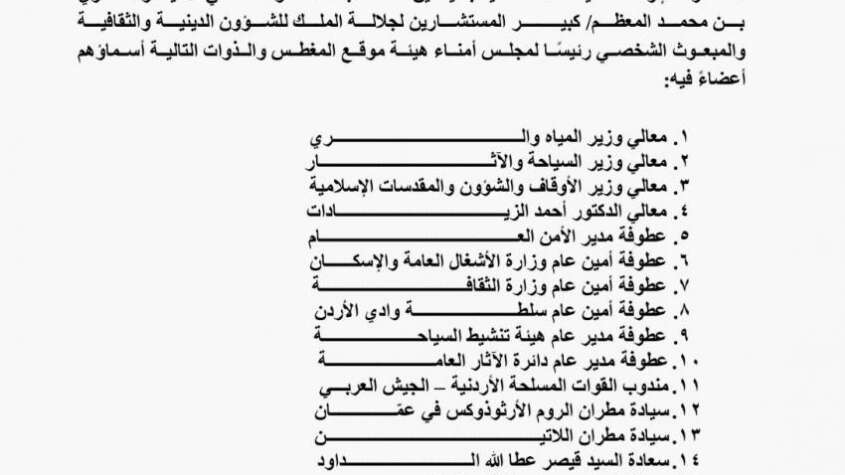 تشكيل مجلس أمناء هيئة موقع المغطس برئاسة الامير غازي