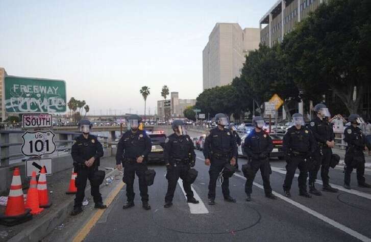 الرؤيا –   أفاد مراسل وكالة نوفوستي بأن الشرطة في لوس أنجلوس استخدمت قنابل الصوت، وكذلك تم استخدام شرطة الخيالة ضد المتظاهرين.