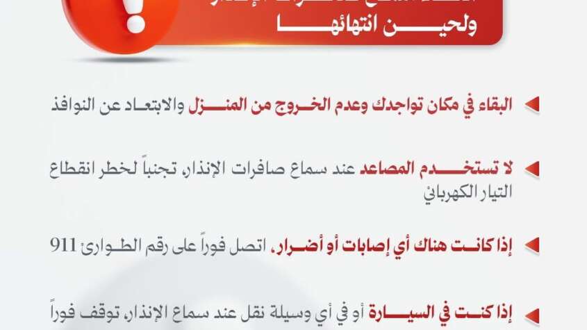‫الرئيسية‬ أخبار محليه ماذا تفعل اثناء سماع صافرات الإنذار