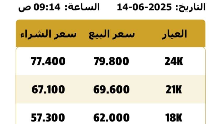 الرؤيا – سجلت أسعار الذهب في السوق المحلية الأردنية، اليوم السبت، ارتفاعًا ملحوظًا مقارنة بالأيام الماضية، بحسب النشرة اليومية الصادرة عن النقابة العامة لأصحاب محلات تجارة وصياغة الحلي والمجوهرات .