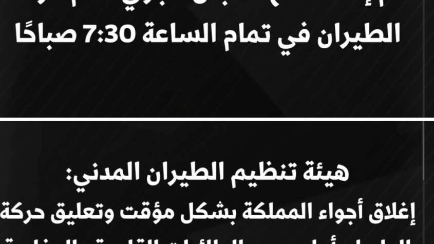 الرؤيا – الطيران المدني تؤكد اعادة فتح الأجواء امام حركة الطيران في الأردن بعد اغلاقها احترازيا وبشكل مؤقت