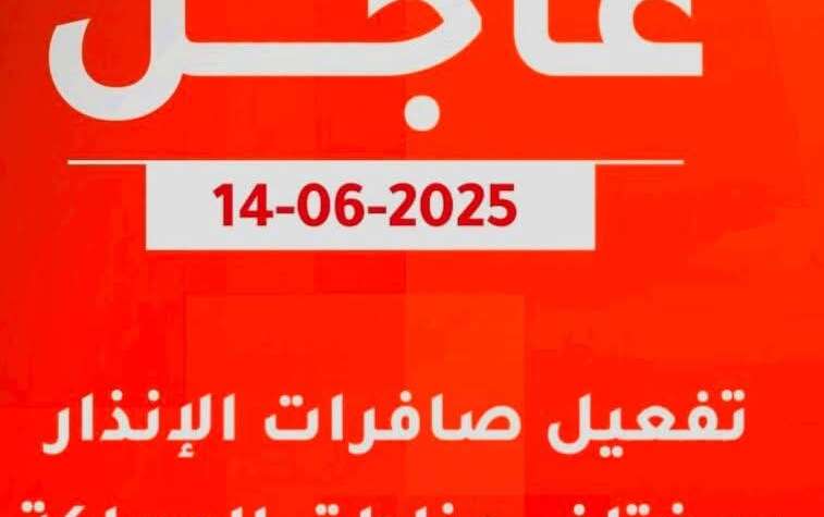 ‫الرئيسية‬ عاجل تفعيل صفارات الإنذار صباح السبت للتنبيه من دخول صواريخ ومسيّرات أجواء الأردن