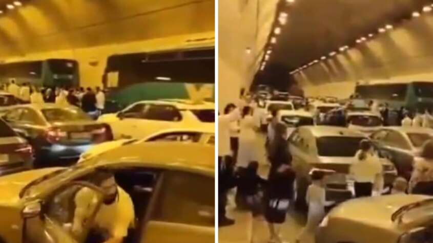 عشرات الإسرائيليين يحتمون داخل نفق سيارات لحظة سقوط الصواريخ الإيرانية