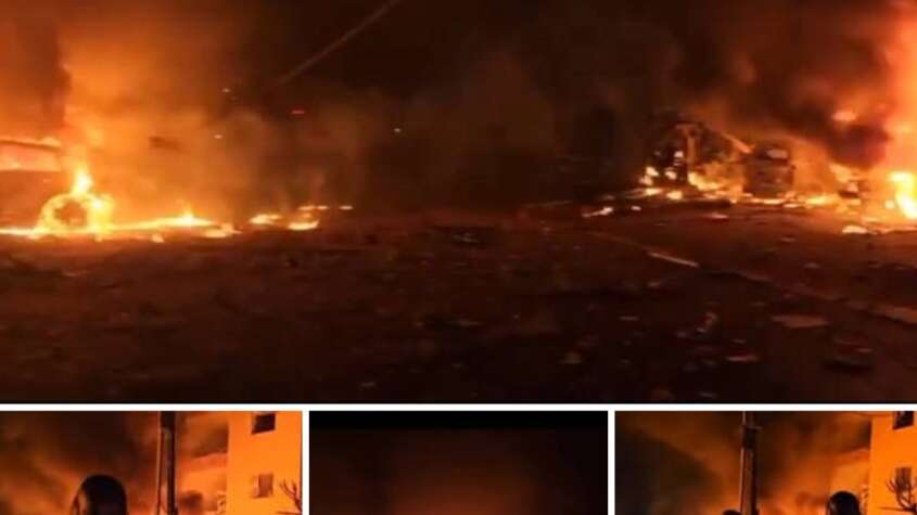 حرائق تلتهم مركبات في حيفا المحتلة ؛ جرّاء القصف الإيراني.