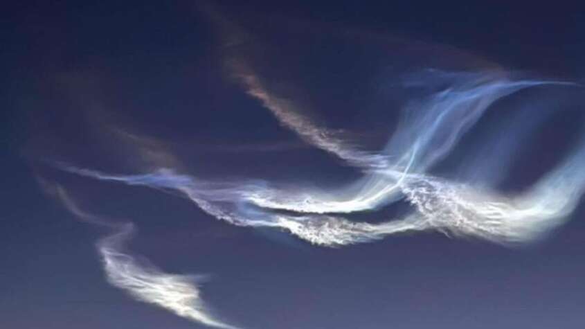 الرؤيا – ظاهرة “الغيوم الصاروخية” في سماء الاردن .. وتحدث هذه الظاهرة عندما يُطلق صاروخ خلال وقت الشفق (الفجر أو الغروب) ، فيضيء ضوء الشمس العادم الناتج عن الصاروخ على ارتفاعات عالية، مشكلًا سحبًا مبهرة تشبه الغيوم المتوهجة أو المتفجرة في السماء