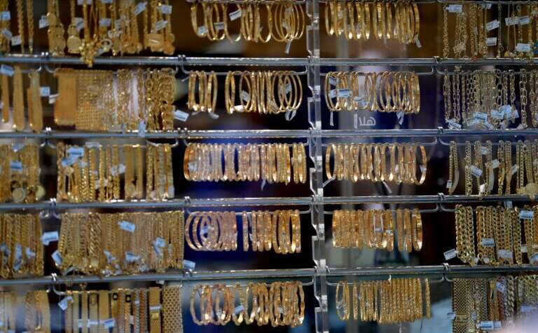 وحسب النشرة اليومية التي أصدرتها النقابة العامة لأصحاب محلات تجارة وصياغة الحلي والمجوهرات، بلغ سعر الغرام الواحد من الذهب عيارات 24 و18 و 14 لغايات البيع من محلات الصاغة عند 79.30 و 61.40 و46.60 دينار على التوالي.