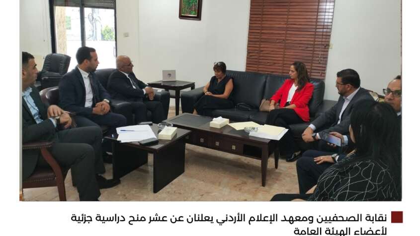 الرؤيا – بحثت نقابة الصحفيين الأردنيين ومعهد الإعلام الأردني سبل التعاون في المجال الأكاديمي والتدريبي، حيث حصلت النقابة على 10 منح دراسية جزئية لبرنامج ماجستير الصحافة والإعلام الحديث، تغطي 70 بالمئة من رسوم الخطة الدراسية، وتشمل نظامي الصباحي المتفرغ والمسائي لغير المتفرغين من أعضاء الهيئة العامة.