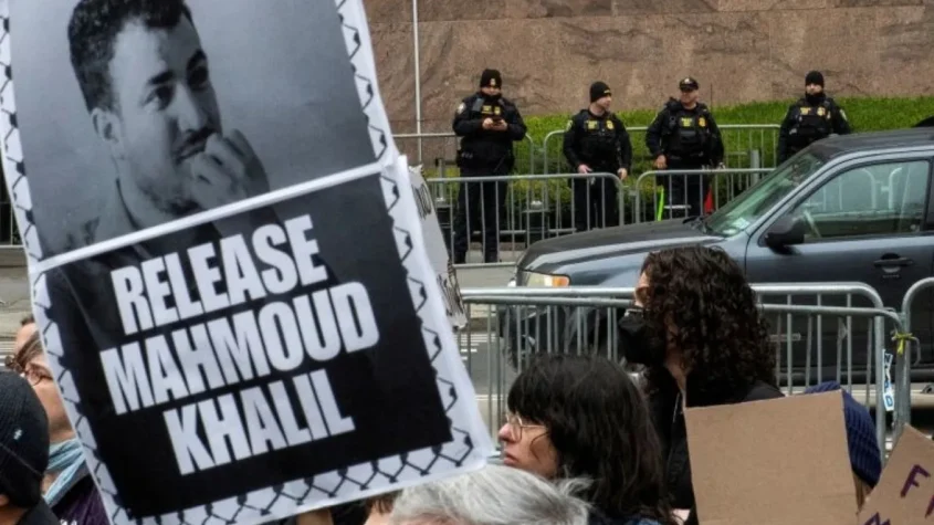 وكان خليل، المولود في سوريا لأبوين فلسطينيين، من الشخصيات البارزة في الاحتجاجات المؤيدة للفلسطينيين والمناهضة لحرب إسرائيل على غزة، وألقى مسؤولو الهجرة القبض عليه في سكنه الجامعي في مانهاتن في 8 مارس/آذار الماضي.