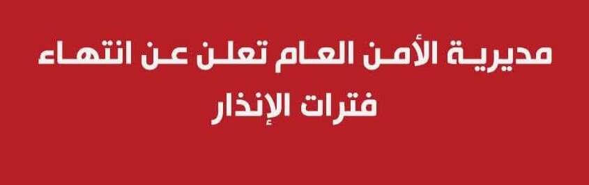 عاجل : مديرية الأمن العام تعلن انتهاء فترات الإنذار وتدعو لاتباع التعليمات