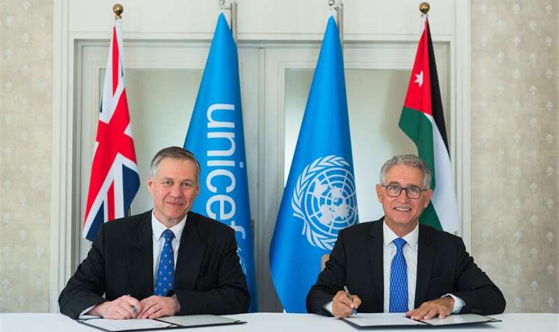 وقال ممثل “اليونيسف” في الأردن، فيليب دوامل، إن هذا الدعم سيمكن المنظمة من مواصلة توفير خدمات المياه النظيفة والصرف الصحي لآلاف العائلات السورية، إذ تعد هذه الخدمات أساسية لصحة ورفاة وكرامة الأطفال السوريين وعائلاتهم في المخيمات، معبرا عن شكره للحكومة البريطانية على الشراكة المستمرة في الأردن خلال السنوات الماضية.