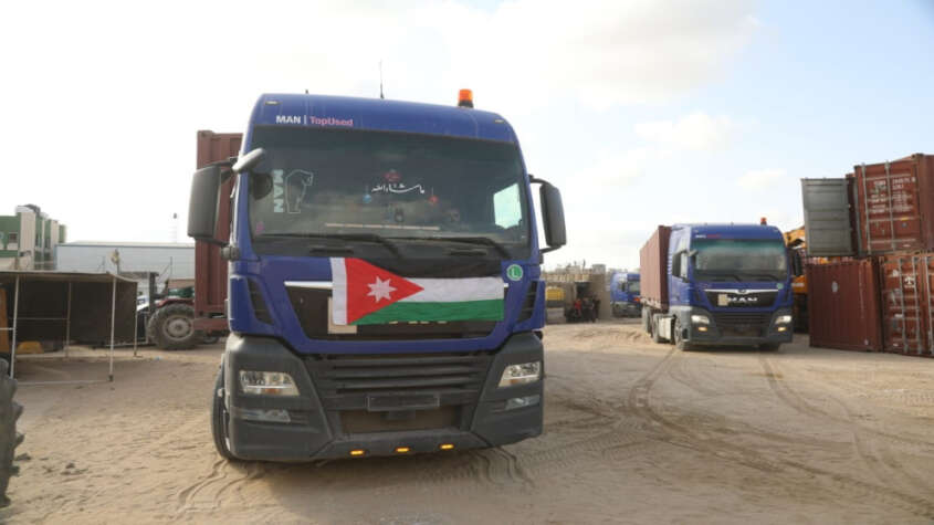 القوات المسلحة تسير قافلة تزويد مساعدات إغاثية للمستشفى الميداني الأردني جنوب غزة/7