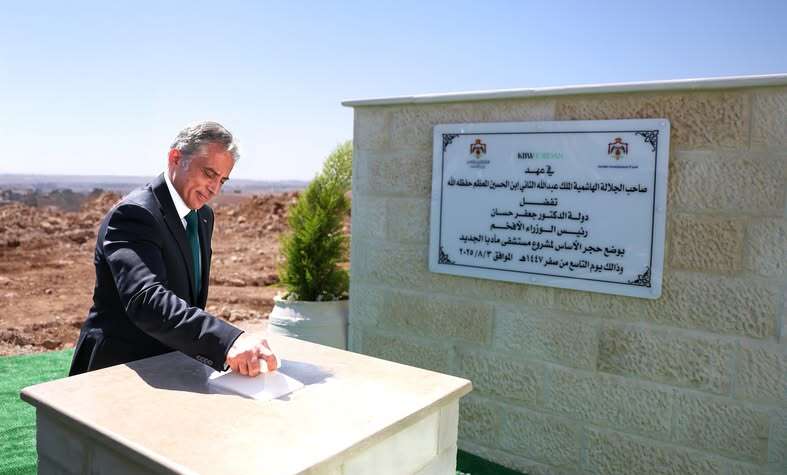 وضع رئيس الوزراء الدكتور جعفر حسان اليوم حجر الأساس لمشروع مستشفى مأدبا الجديد، إيذانًا ببدء العمل على إنشائه وفق أعلى المواصفات والمعايير الطبية الحديثة.