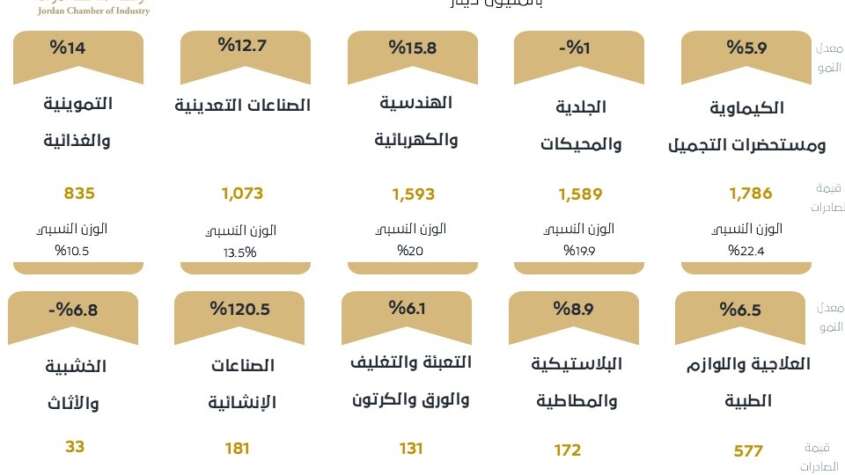 وأكدت الغرفة في تقريرها، أن هذه النتائج تعكس استدامة القدرة التصديرية للصناعة الأردنية من حيث الجودة والتنوع والتنافسية السعرية وقدرتها على استيعاب الطلب المتزايد في الأسواق العربية والأوروبية ضمن استراتيجية واضحة لفتح أسواق جديدة وتعزيز التواجد في الأسواق التقليدية.