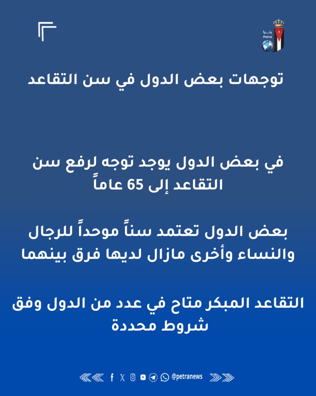 وحسب خبراء تعكس الاتجاهات الراهنة في في عدد من الدول توجهاً واضحاً نحو إعادة هيكلة أنظمة التقاعد، عبر رفع سنّ الإحالة إلى التقاعد تدريجياً، وتوسيع قاعدة المشتركين، بما يحقق استدامة مالية طويلة الأمد دون الإخلال بالعدالة الاجتماعية.