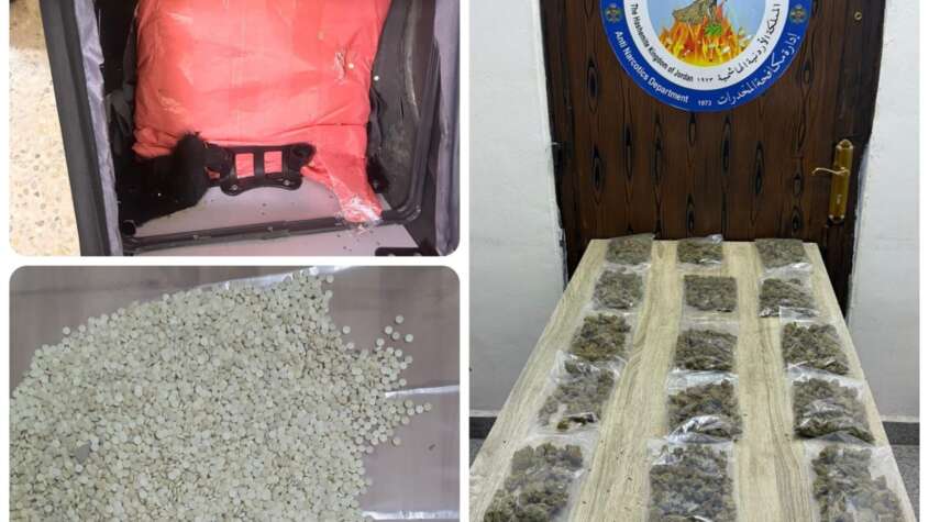 وفي مركز حدود العمري أحبطت كوادر مكافحة المخدرات وبالتنسيق والتعاون مع الأجهزة الأمنيّة والجمارك الأردنية محاولة شخصين تهريب 20 ألف حبّة مخدرة أخفياها داخل إحدى حقائب السفر.