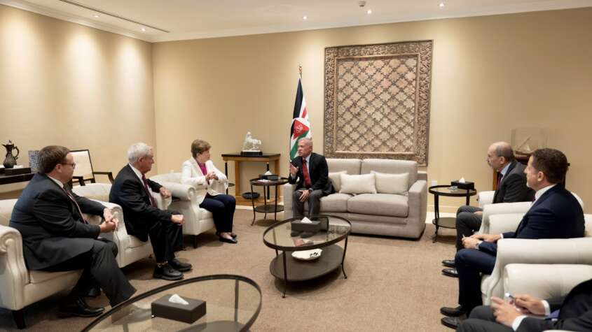 استقبل جلالة الملك عبدالله الثاني، اليوم الأحد، عضو مجلس الشيوخ الأمريكي السيناتور جين شاهين، وعضو مجلس النواب الأمريكي جو ويلسون.