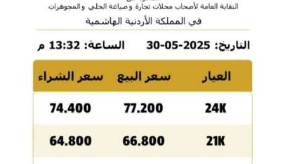 الرؤيا – استقرت أسعار الذهب في السوق المحلية، وفق التسعيرة الثانية اليوم الجمعة، الصادرة عن…