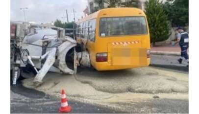 حادث تصادم بين باص مدرسة وخلاط اسمنت في أبو نصير .. تفاصيل