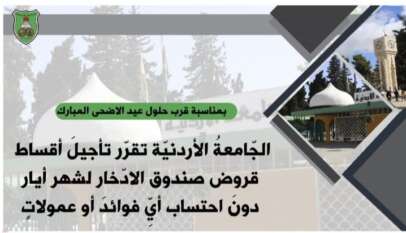الجامعةُ الأردنيّة تقرّر تأجيل أقساط قروض صندوق الادّخار