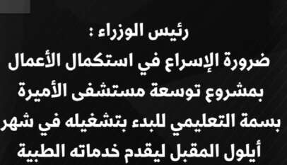الرؤيا -رئيس الوزراء :ضرورة الإسراع في استكمال الأعمال بمشروع توسعة مستشفى الأميرة بسمة التعليمي…