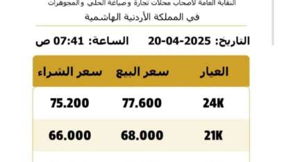 إليكم أسعار الذهب في الأردن