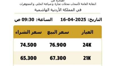 ارتفاع فلكي على أسعار الذهب في الأردن