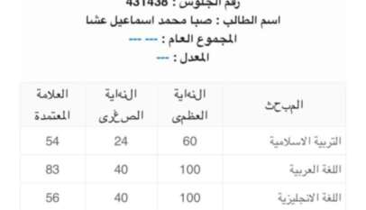 الرؤيا الإخبارية:- قدّمت أسرة موقع الرؤيا الإخبارية، ممثلة بمديرها الإعلامي طلال الجبر وجميع العاملين، التهاني والتبريكات إلى الصديق والاخ محمد عشا، بمناسبة نجاح ابنته صبا في امتحان الثانوية العامة. وأكدت أسرة الموقع اعتزازها بهذا الإنجاز، متمنية للطالبـةصبا مزيدًا من التفوق والنجاح في مسيرتها التعليمية، وصولًا إلى أعلى الدرجات العلمية.